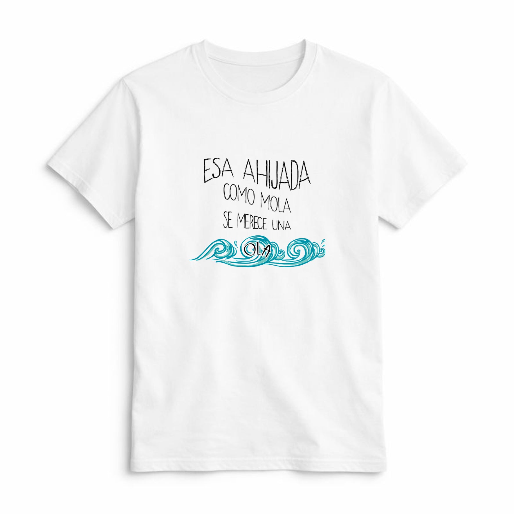 Esta camiseta para ahijada es un detalle original y divertido para sorprender con una frase llena de cariño. Su diseño con tipografía llamativa y el mensaje “Esa ahijada como mola se merece una ola” la convierte en un regalo original para ahijada perfecto para sacar una sonrisa.