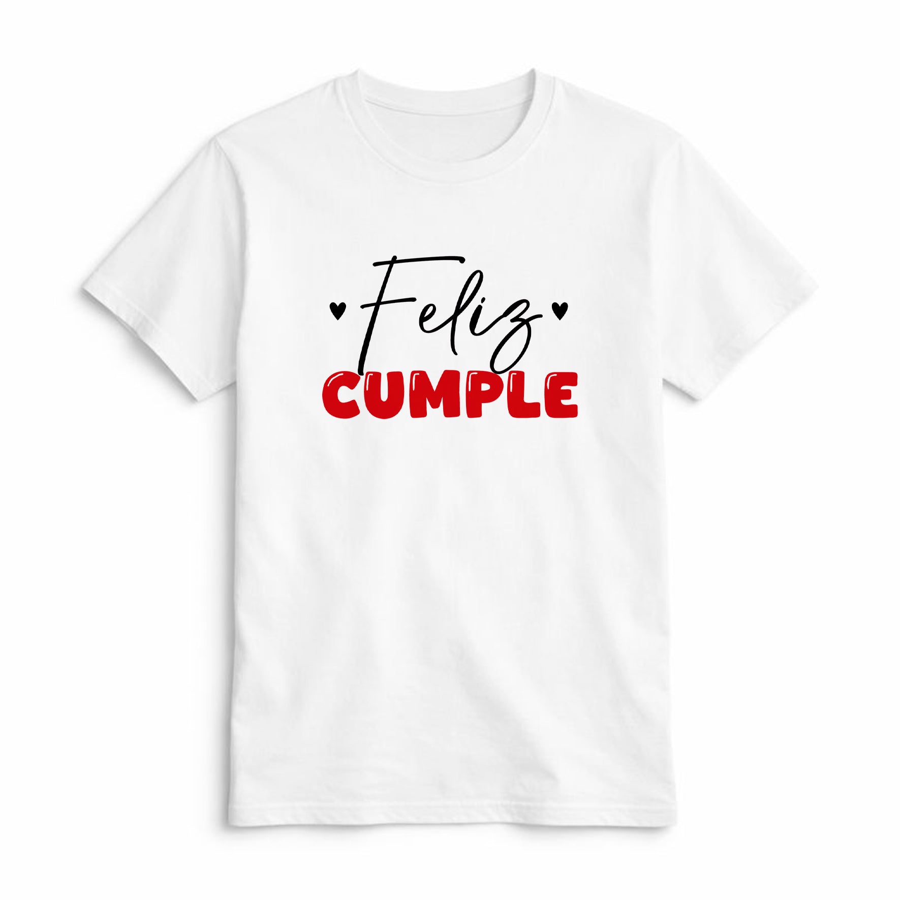 Esta camiseta de cumpleaños es una opción original, moderna y muy fácil de regalar para celebrar un día especial. Su diseño tipográfico con la frase “Feliz Cumple” y pequeños corazones la convierte en un regalo original de cumpleaños perfecto para sorprender con un detalle bonito y alegre.