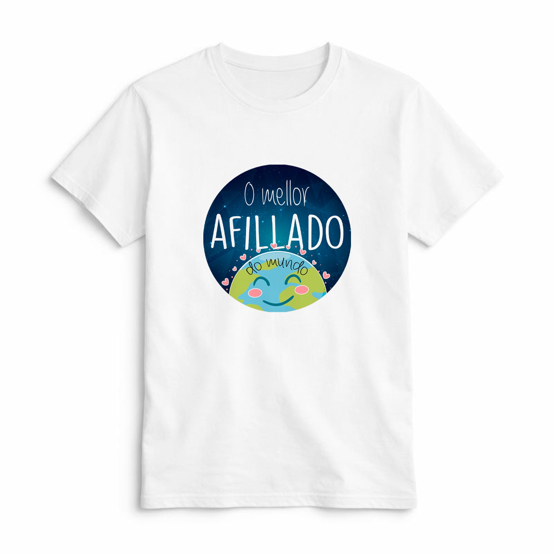 Esta camiseta para ahijado es un detalle original y bonito para sorprender con una frase especial en gallego. Su diseño con ilustración del mundo y el mensaje “O mellor afillado do mundo” la convierten en un regalo original para ahijado lleno de cariño.