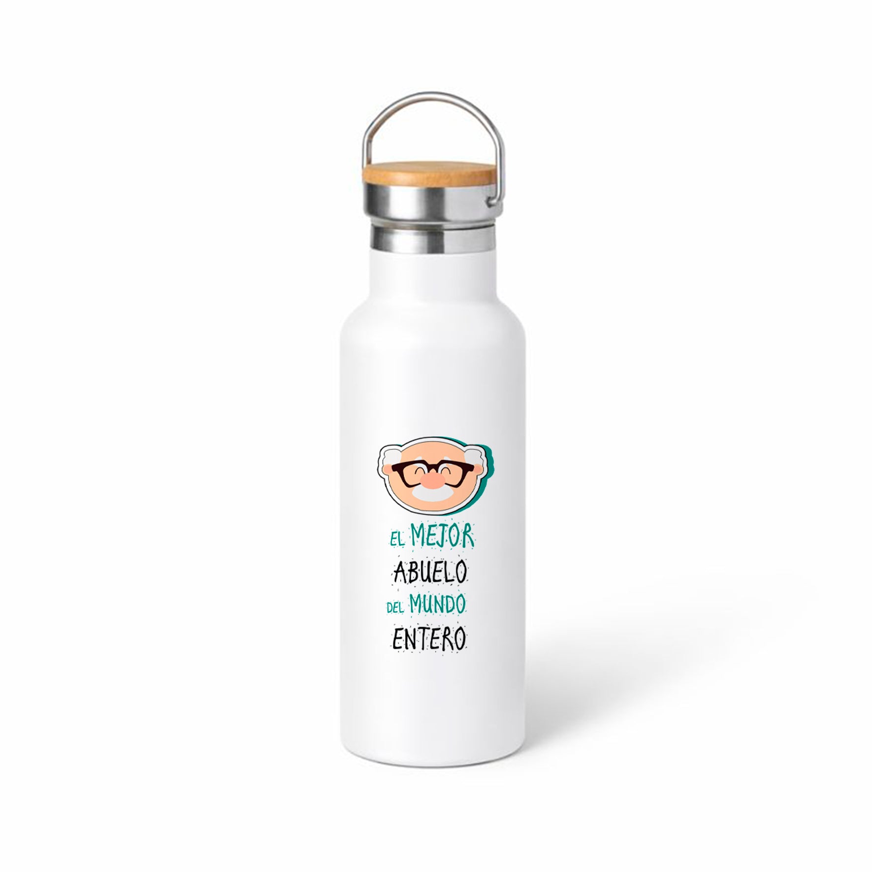 Si buscas un regalo que sea tierno y gracioso a la vez, este termo lo tiene todo. La ilustración del abuelo con gafas y la frase “El mejor abuelo del mundo entero” lo convierten en un detalle perfecto para sorprender: fácil de acertar, bonito y para uso diario.