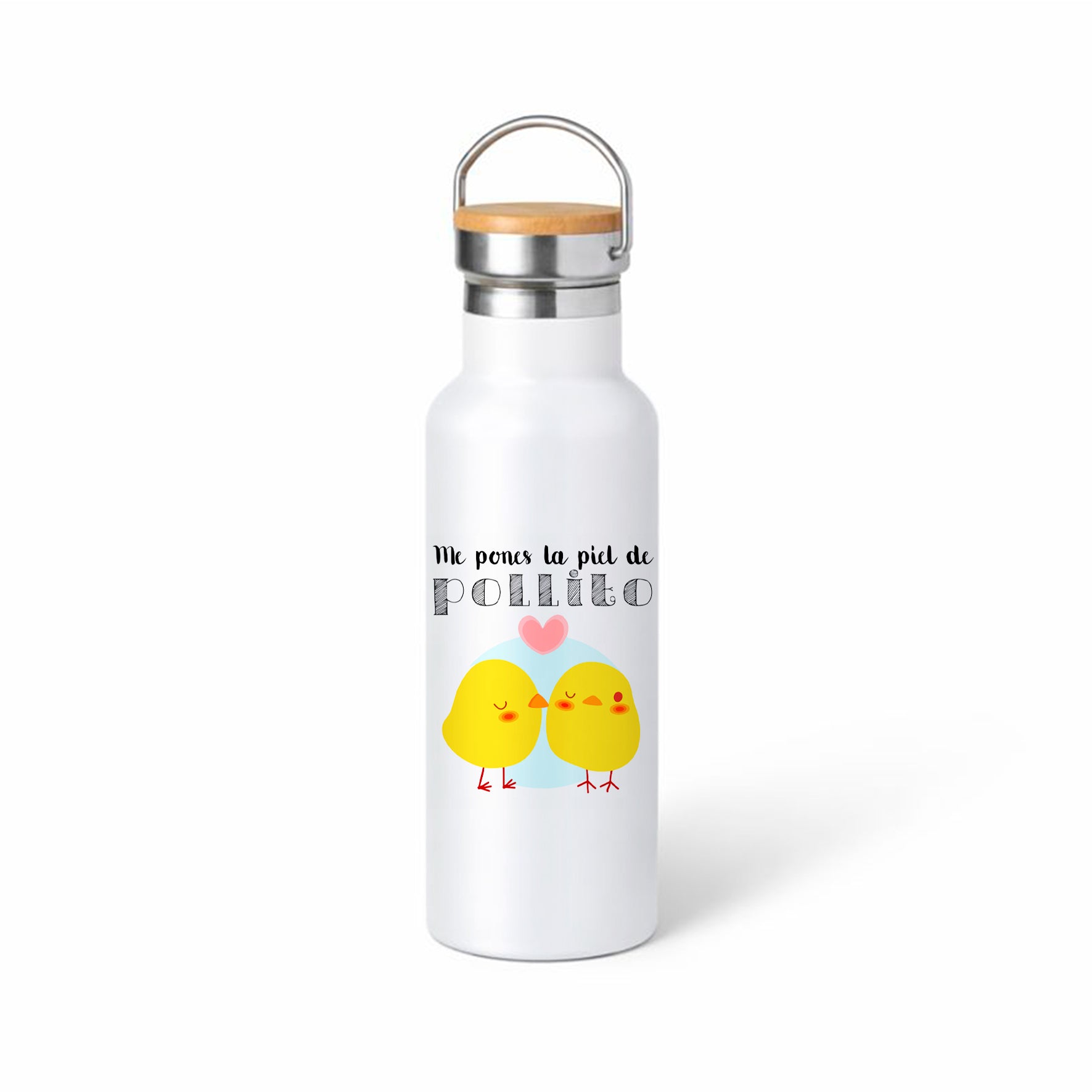 Termo “Me pones la piel de pollito” – diseño cute con pollitos y corazón
